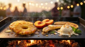 Le crépitement des dernières braises, l’odeur sucrée du caramel qui se forme lentement, et ces quartiers de fruits qui prennent une teinte dorée sous vos