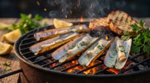 Le crépitement des braises, l’odeur iodée qui s’élève dans l’air du soir, et ces longs coquillages nacrés qui s’ouvrent doucement sous l’effet de la chaleur…